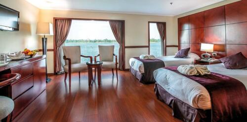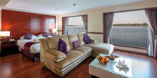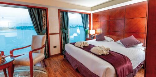 Amwaj Nile Cruise is characterized by the modern designs of large cabins, as well all facilities you need on board the cruise, because of the large swimming pool in the upper deck which is suitable for all ages. Spend unforgettable time in your private tours in Luxor and Aswan & enjoy your time in Luxor Aswan Nile Cruise Trips.